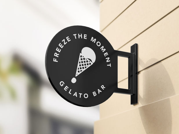 To give this brand a unique identity, I used handwritten font. The shape of the exclamation mark is derived from the quintessential ice-cream cone.